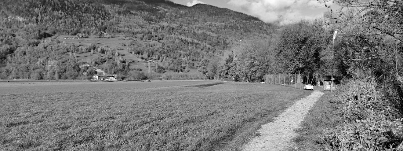 Blick auf den im Jahre 2022 angelegten Wanderweg am Fressguet. Blick nach Nordwesten. Etwa in der Bildmitte erkennbar die Start- und Landebahn des…
