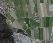 Ausschnitt aus einer Aufnahme (Infrarot, nach schwarz-weiss konvertiert) von 1997 aus 2.700 m Höhe. Bemerkenswert, wie wenig Bäume damals noch auf der Flur…