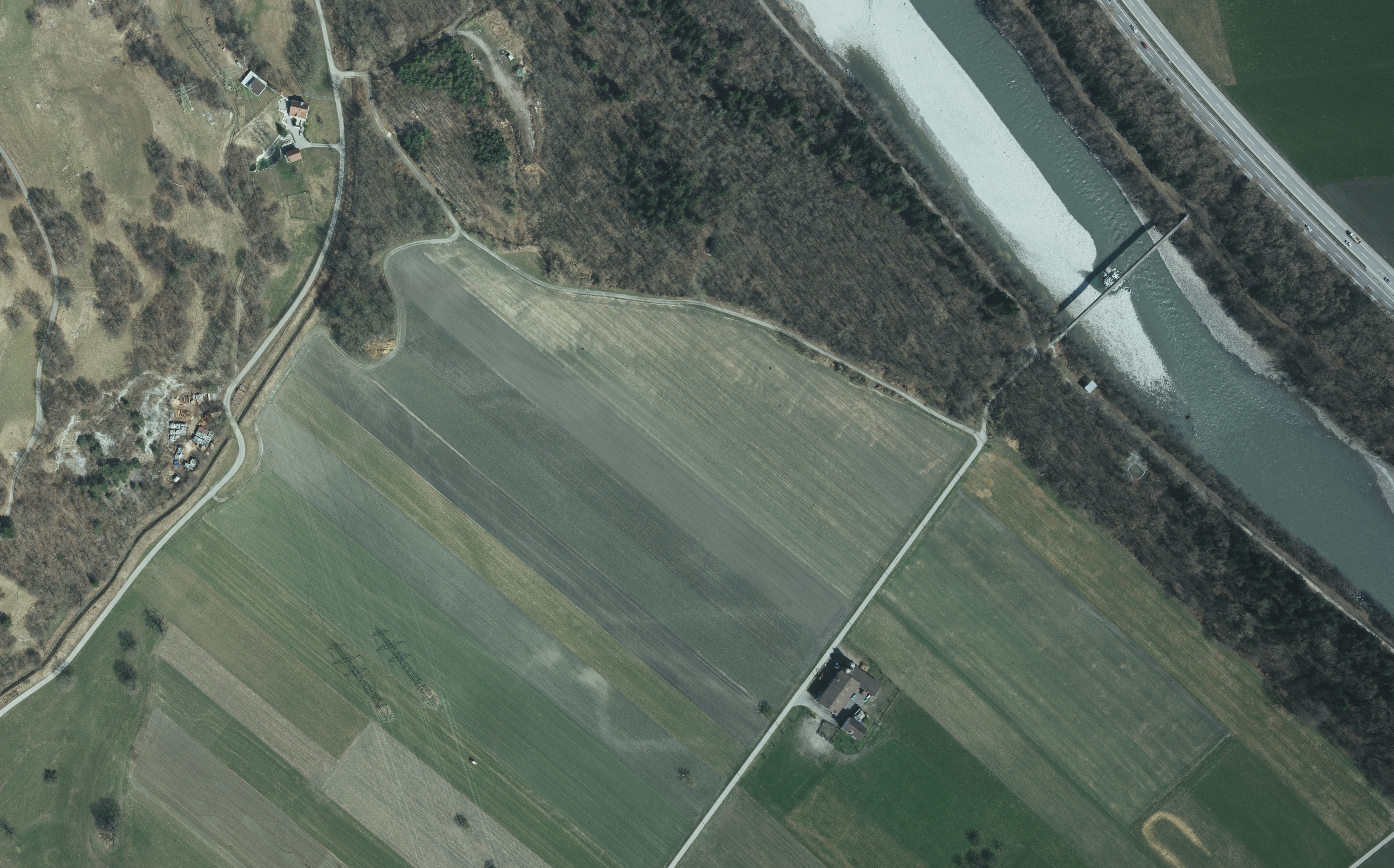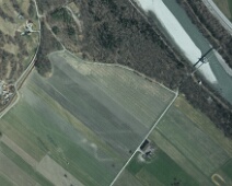 Ausschnitt aus einer hochauflösenden Aufnahme von 1999 aus 1.620 m Höhe mit der Flur in der Bildmitte. Oben rechts im Bild die Oleodotto-Brücke, links der…