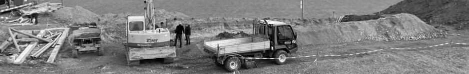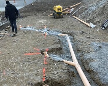 Anf. Jan. 2021: Fortgang der Verfüllarbeiten neben der nordwestl. Aussenwand des Kellergeschosses nach abgeschlossener Montage der Wandisolation. Blick nach…