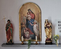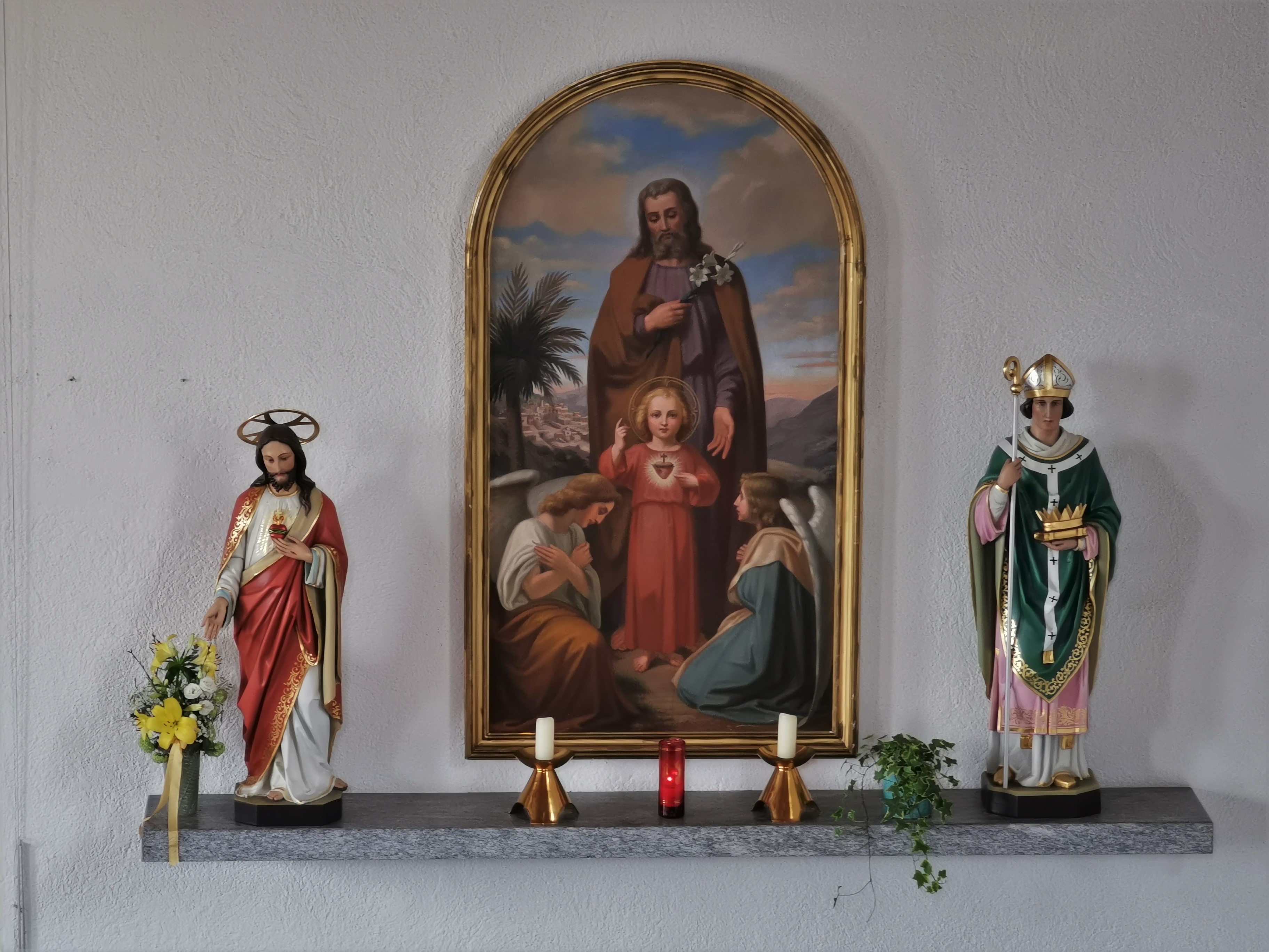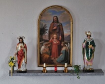 Links: Herz-Jesu-Statue; rechts: Statue des hl. Luzius (1. Bischof v. Chur); Altarbild: hl. Joseph mit Jesus-Knabe; Standort rechts vom Chor