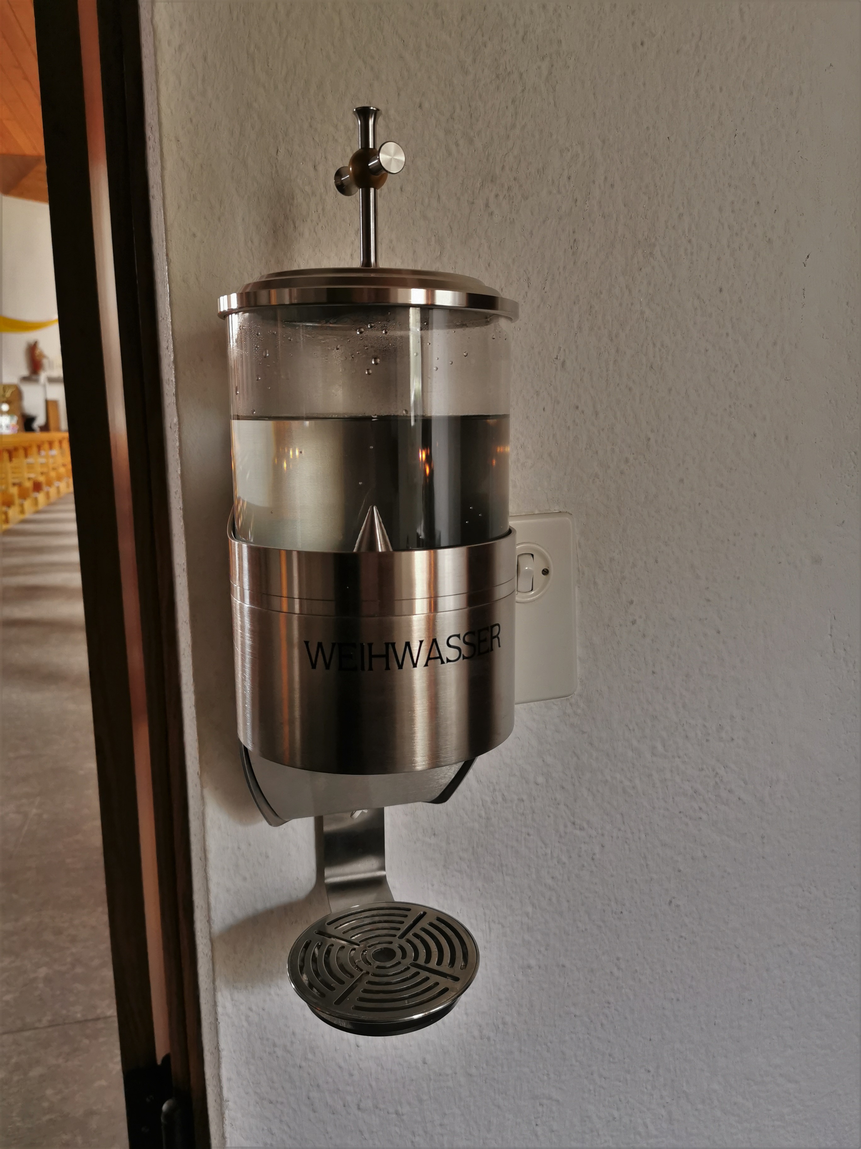 Weihwasser-Spender in der Eingangshalle