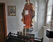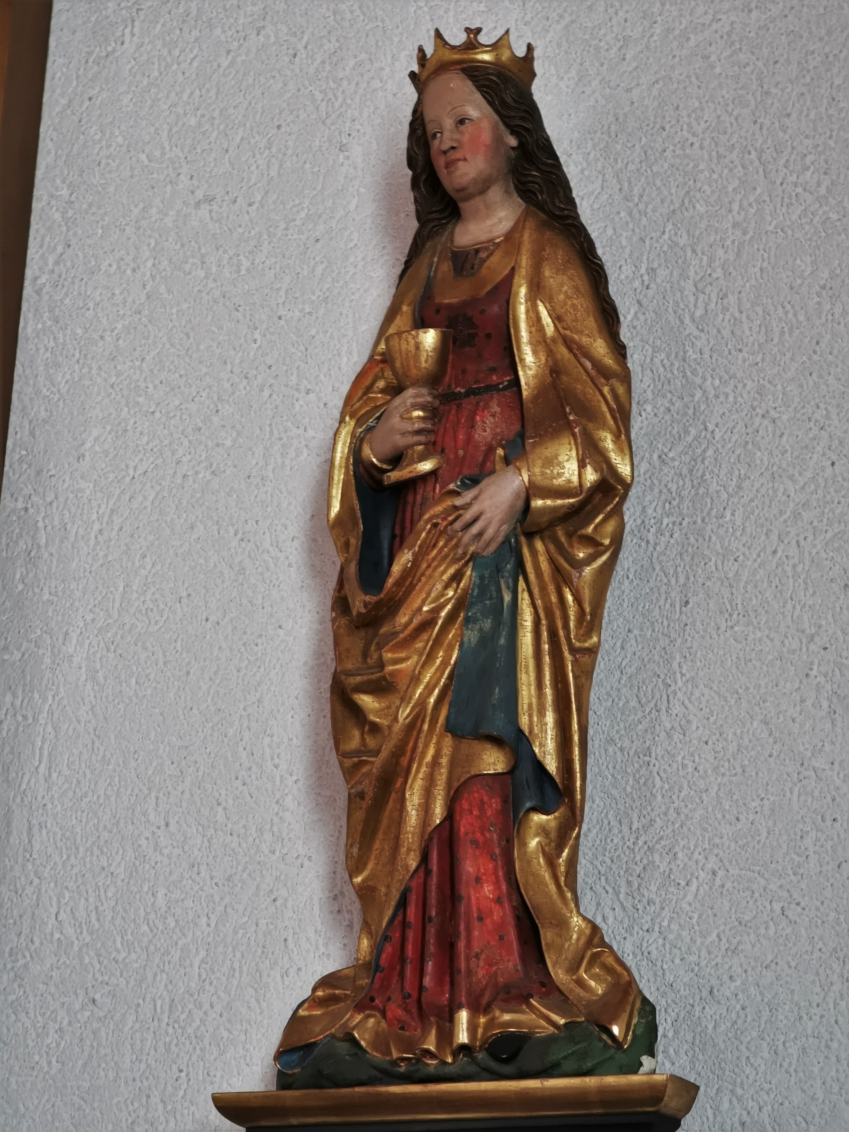 Statue der heiligen Barbara aus dem alten Altar (ca. 1500), Standort Altarraum hinten, rechts vom Kreuz