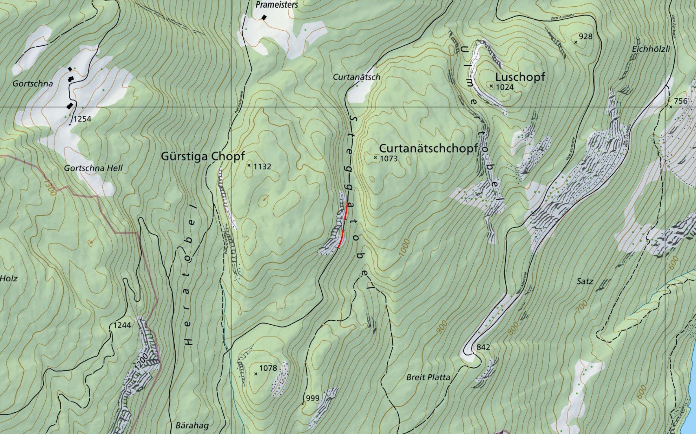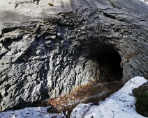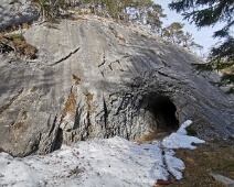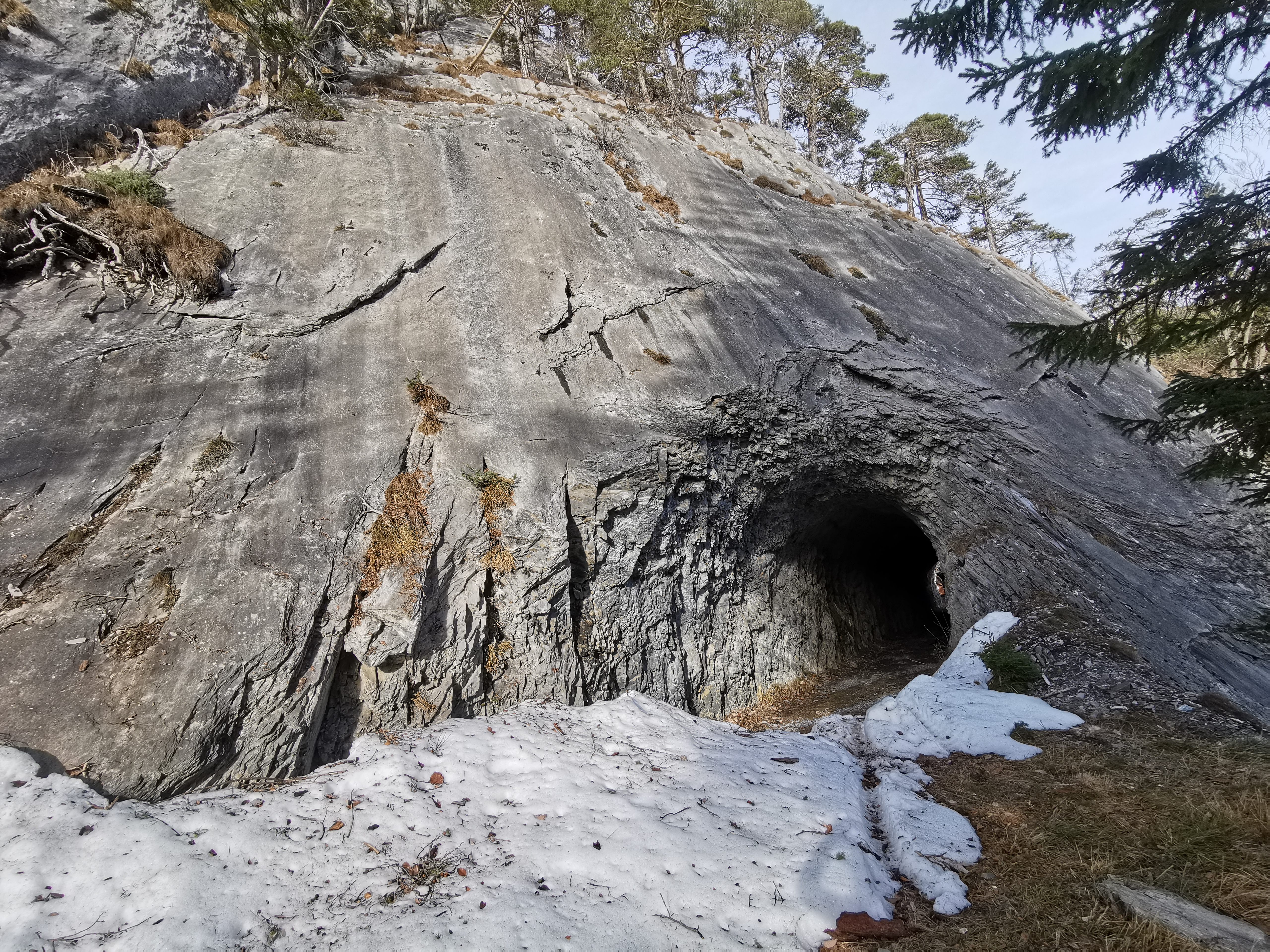 Grosse Felsplatte unter dem Gürstiga Chopf mit dem südl. Tunneleingang. Ein Teil der zuvor von der Platte abgerutschten Schneemassen liegt noch auf dem…