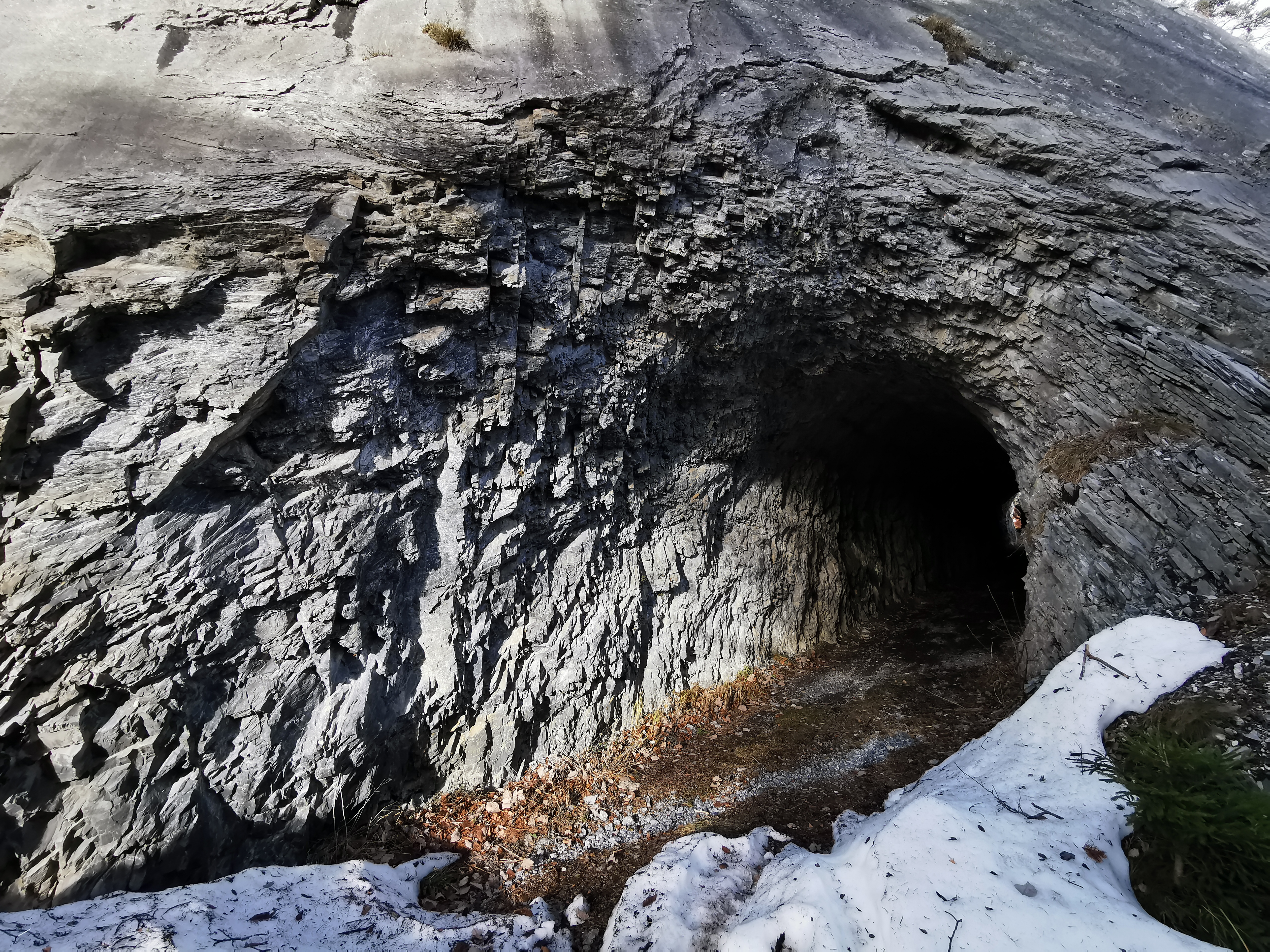 Wuchtige Felswand über dem nördl. Abschnitt des Tunnels, Blick nach Süden.