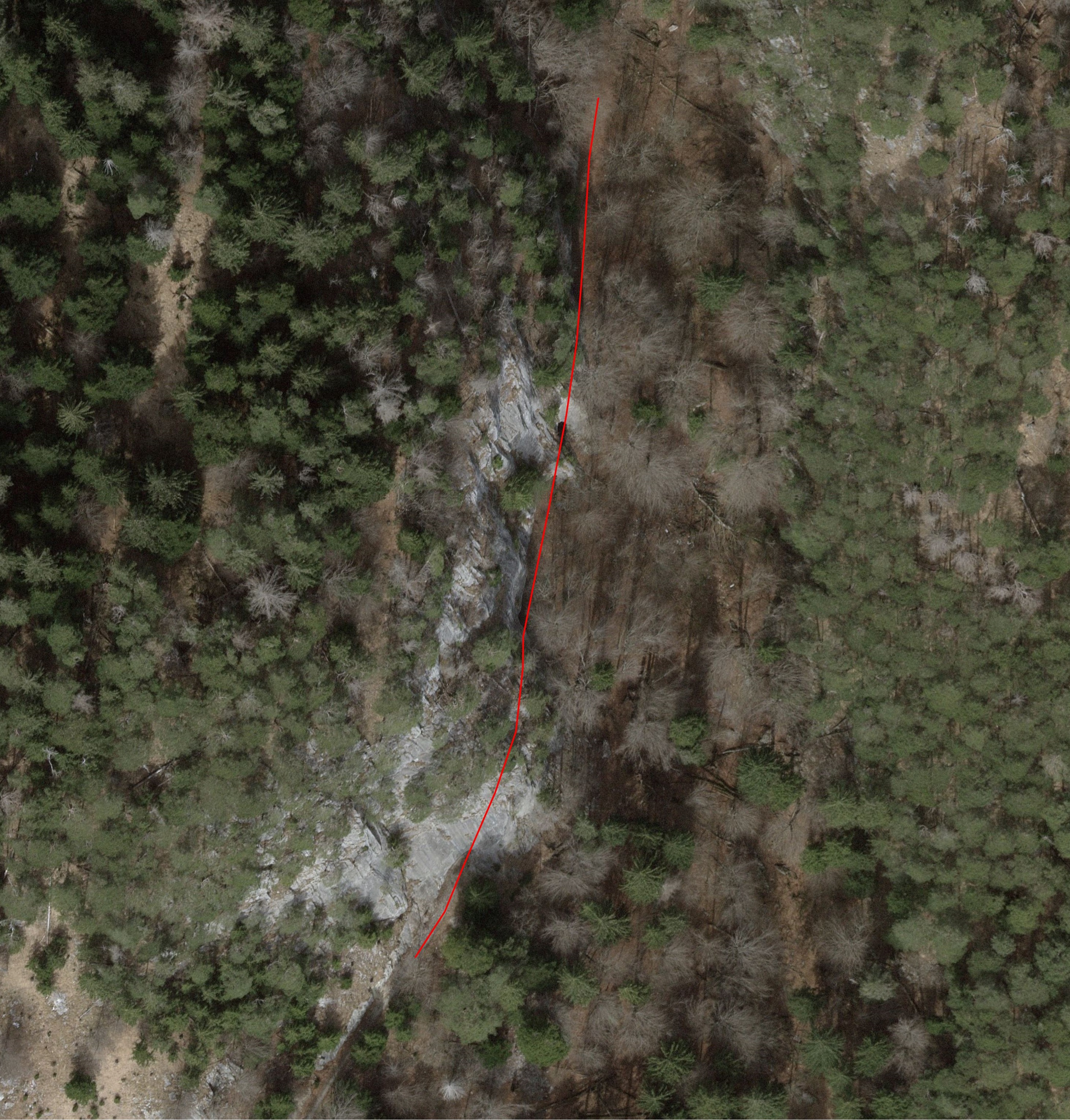 Ca. 25 m langer Zwischenraum zwischen südl. und nördl. Tunnelabschnitt, Blick nach Norden, rechts unten der obere Teil des Steggatobels.