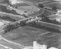 Seltene Aufnahme mit beiden Rheinbrücken, Blick von Südwesten. Aufnahme: ca. 1958.