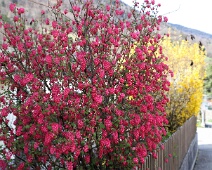 Blut-Johannisbeere (Ribes sanguineum) in der 2. Märzhälfte in voller Blüte am Calandaweg .