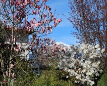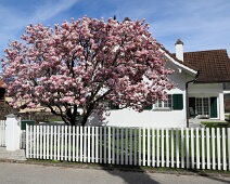 Prachtvoll blühende Tulpen-Magnolie (Magnolia × soulangeana) am Calandaweg (2. Märzhälfte).