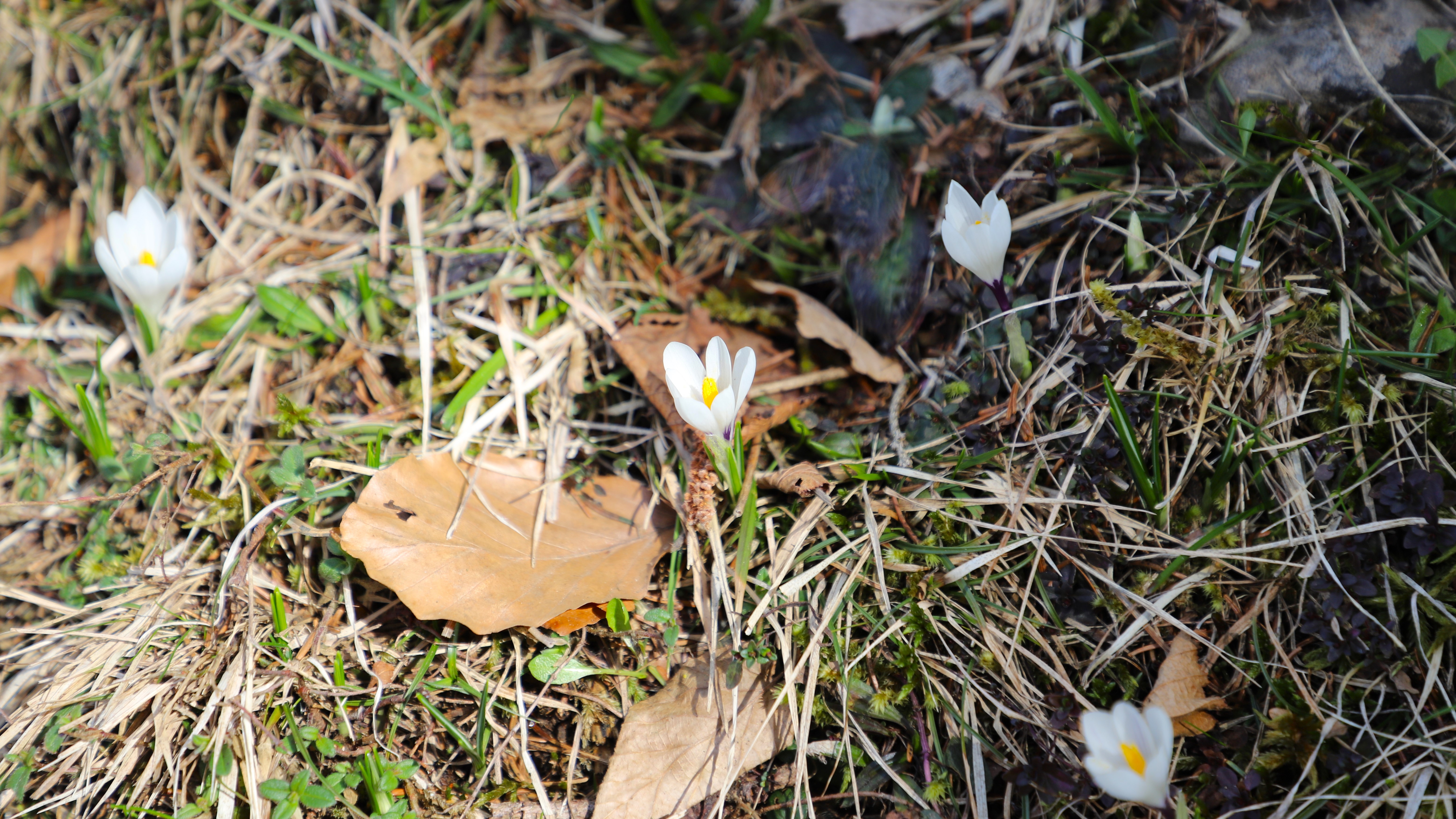 Am Südostrand der Zanoppis-Bergwiese (auf. ca. 1.216 m Höhe) im Bergfrühling zahlreich spriessender Frühlings-Krokus.