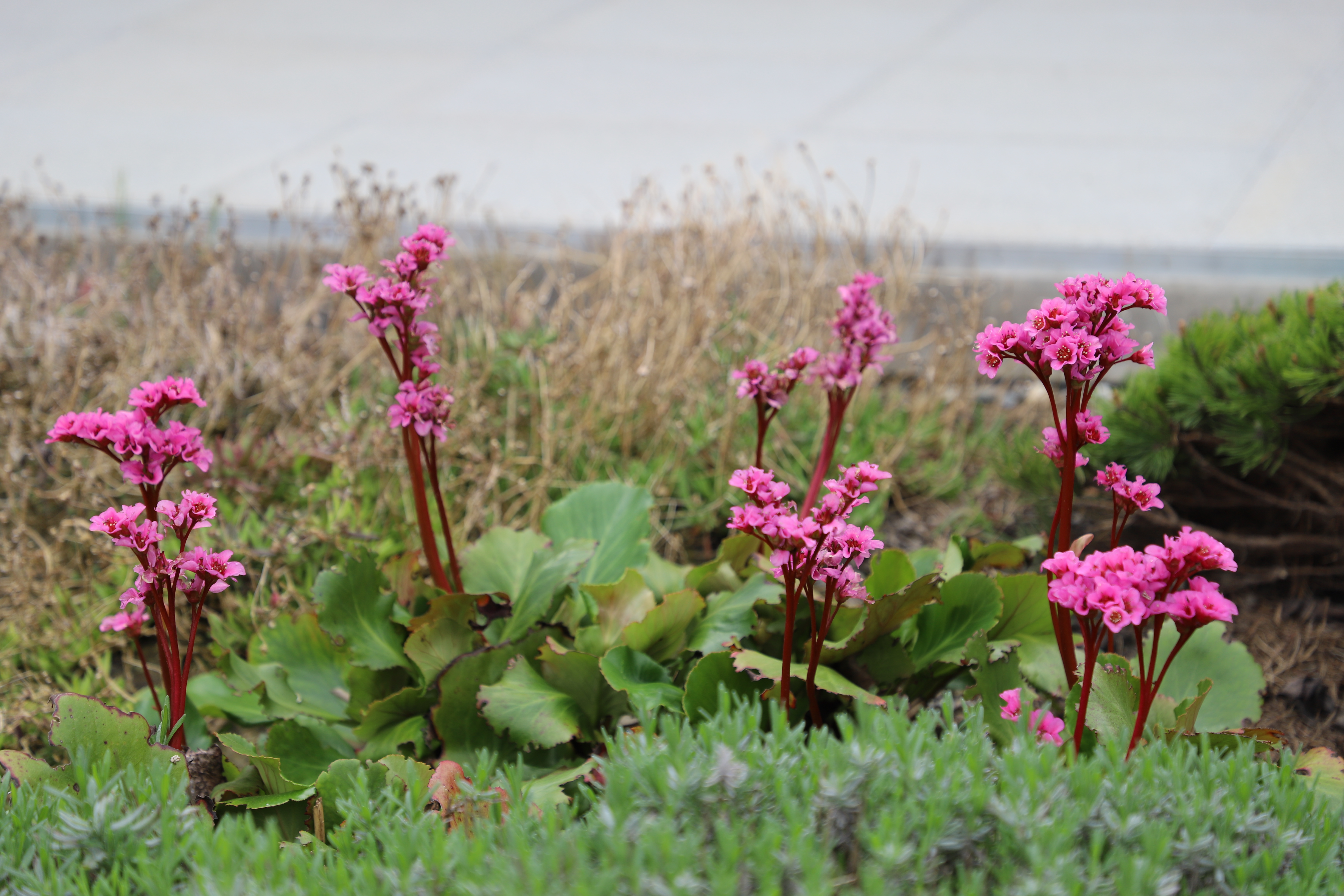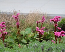 Schön blühende Polster-Staude an der Quadrella zu Anf. April (Haus Nr. 25).