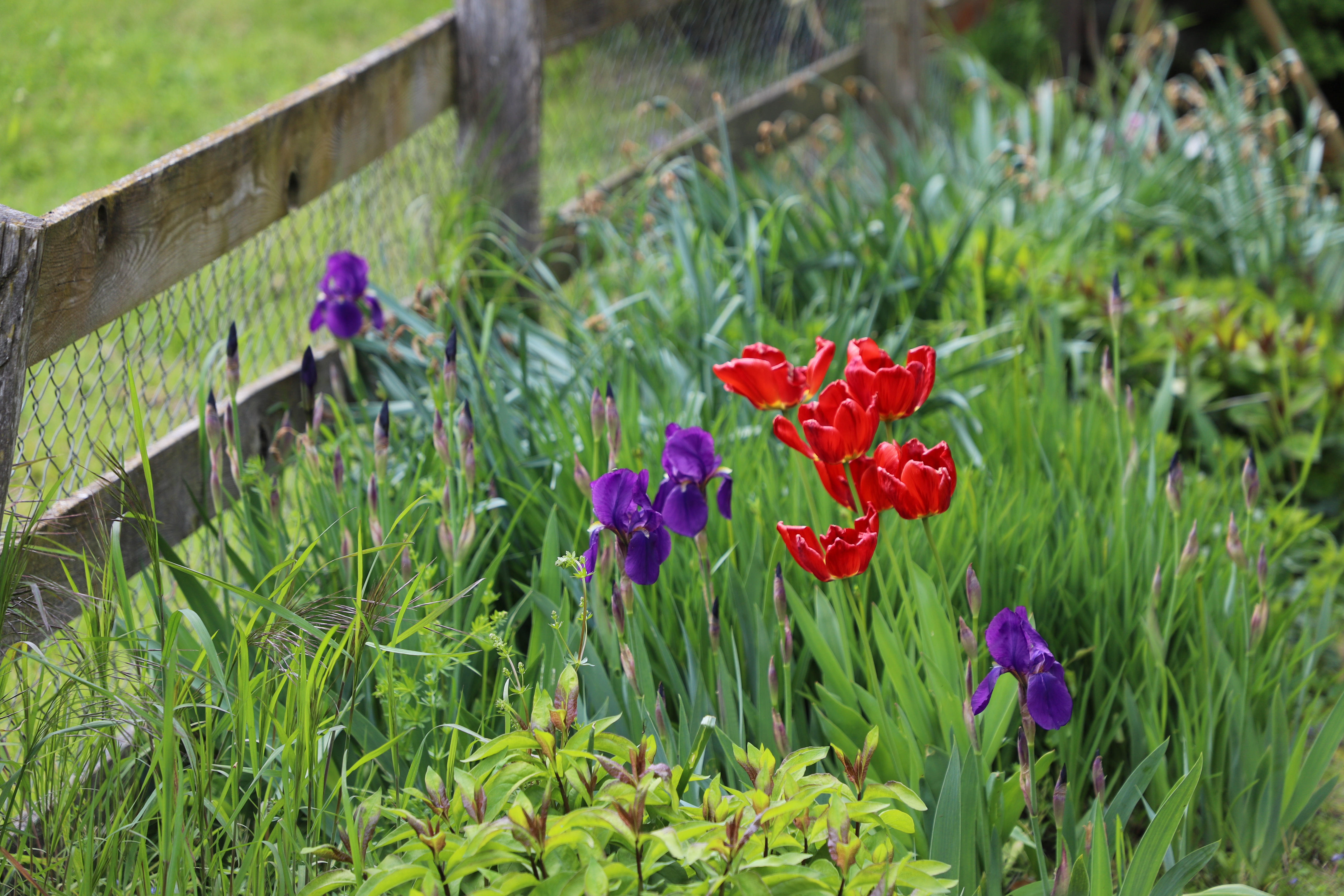 Hier ergänzt mit Tulpen in einem Garten in Friewis (Haus Nr. 3) zu Ende April.