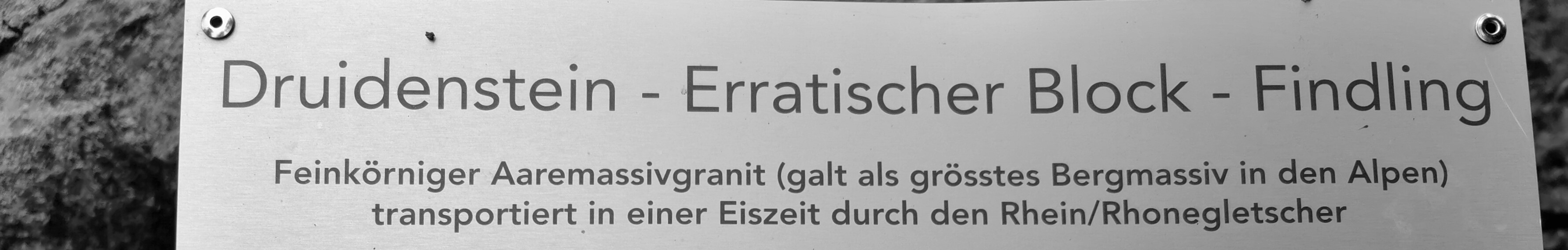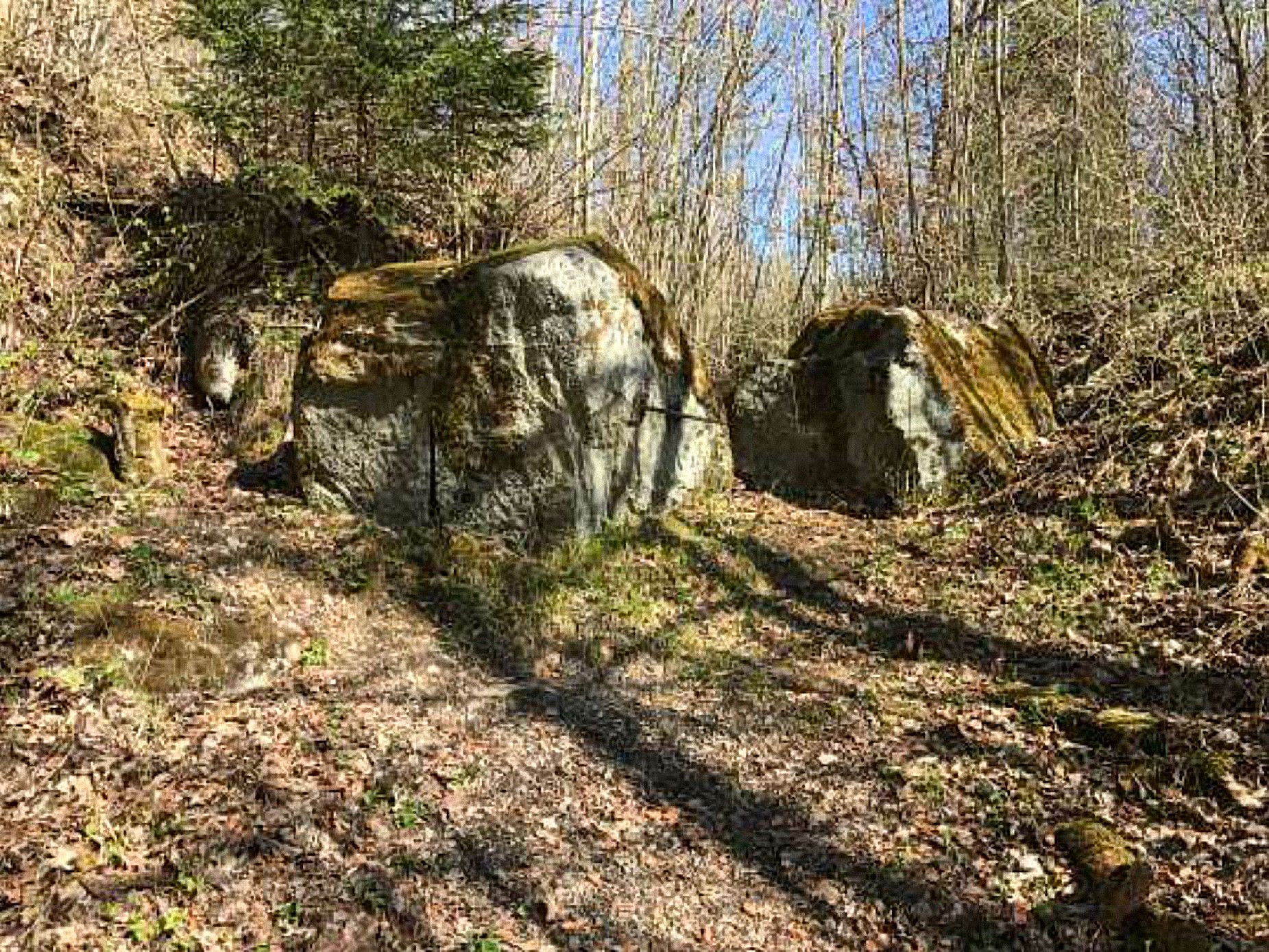 Sog. Druidenstein am Wegabzweig 'Chäppeli' (804 m), erratischer Block (ein Teil davon), 5 to schwer (von ursprünglich 12-15 to). Durch Wegbauarbeiten…