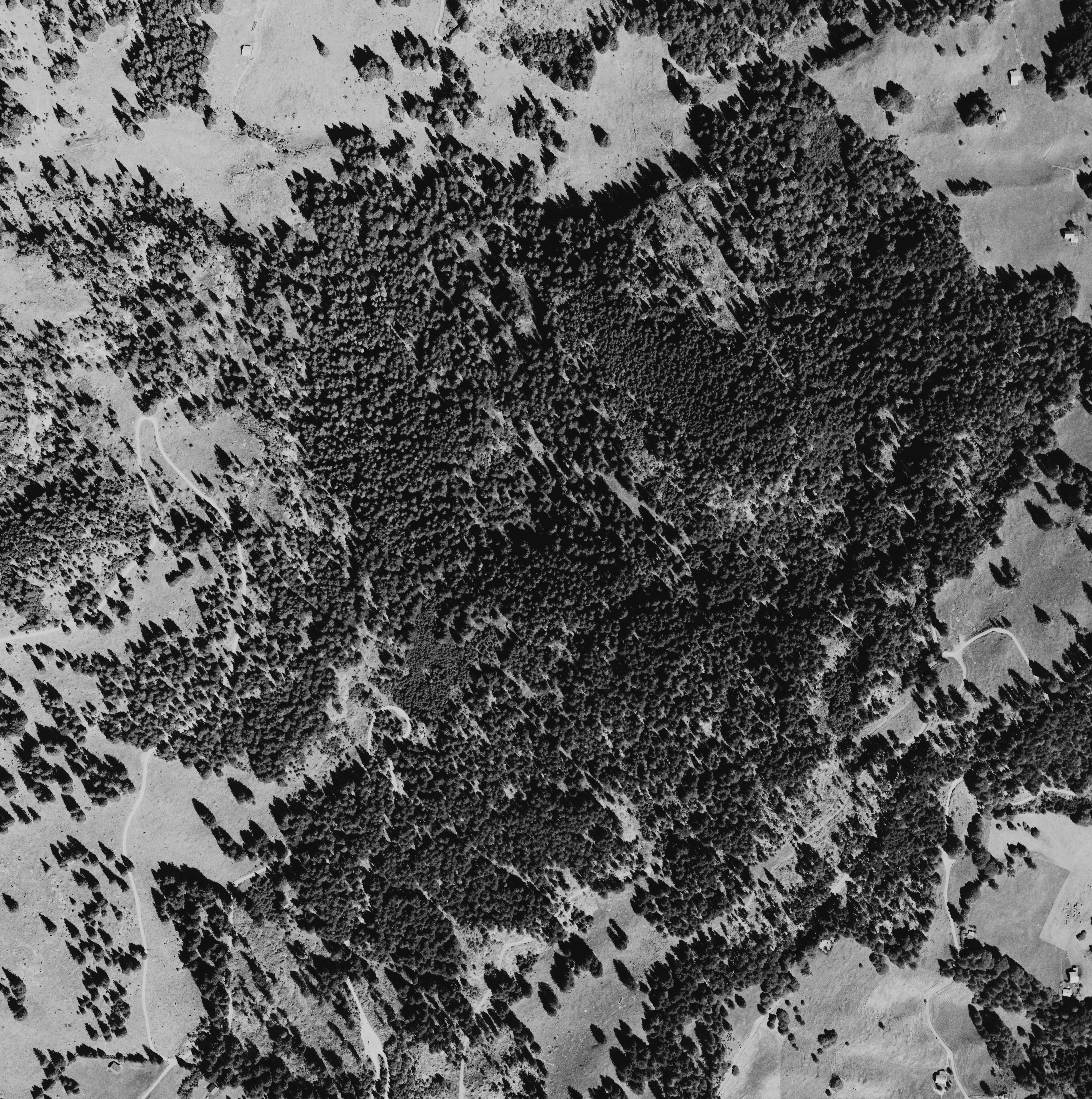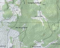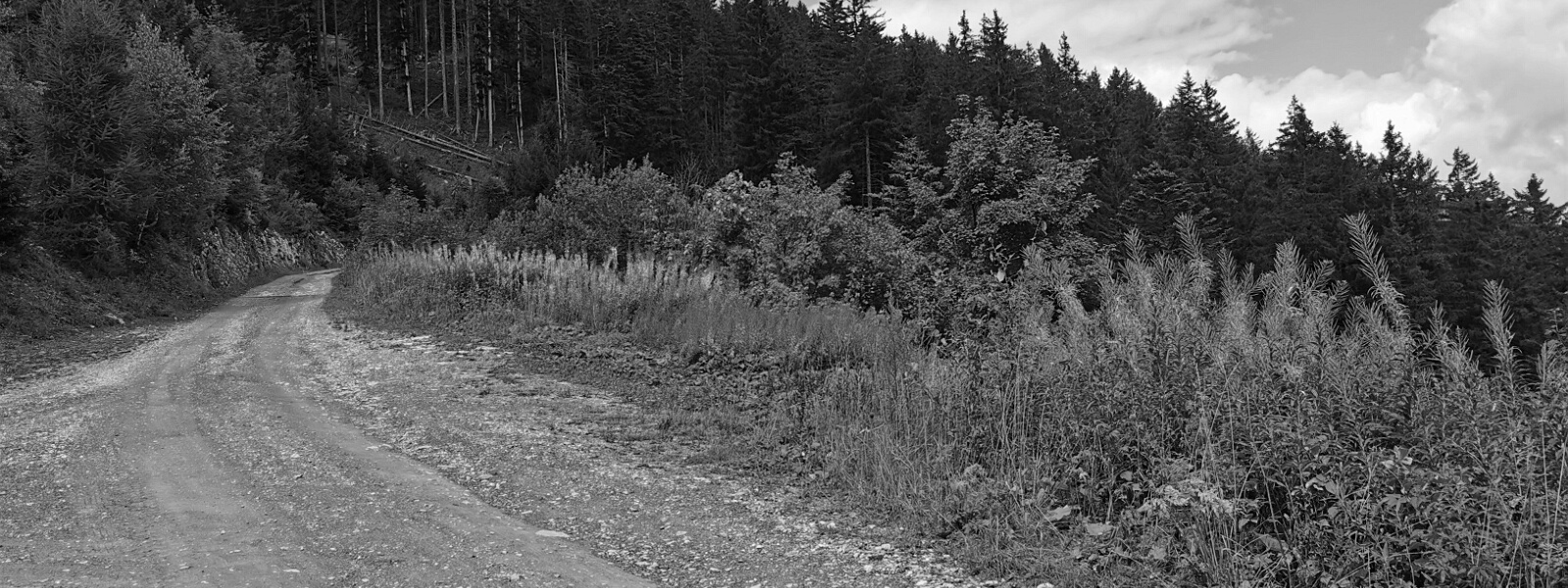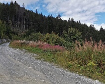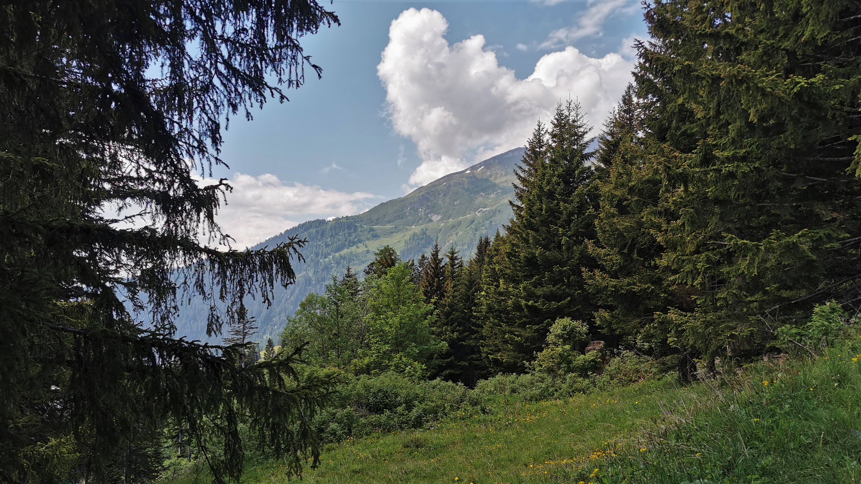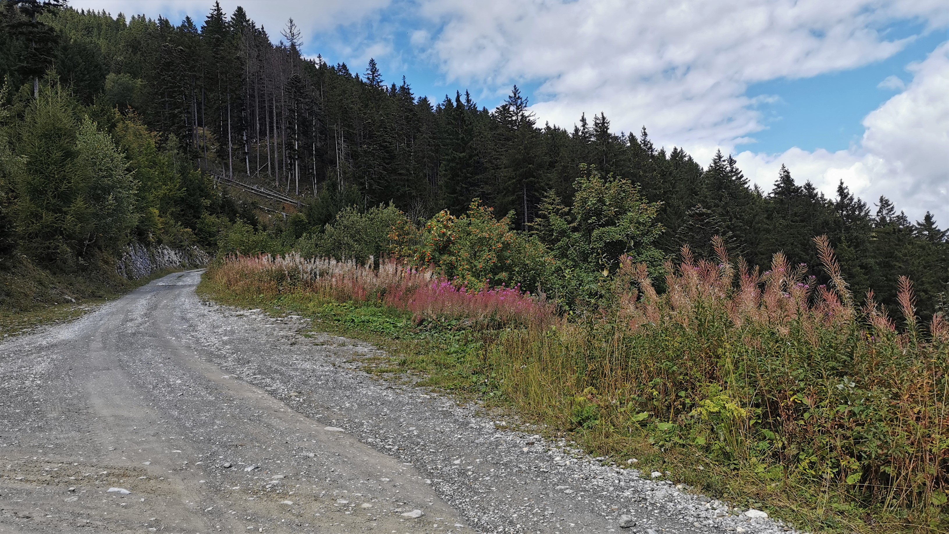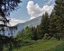 Blick vom Wegabzweig an der Alpstrasse hinauf zur Salz (Abzweig Bridarank zu den Oberbergen) auf 1.461 m Höhe nach Norden auf den Bäragüllawald.