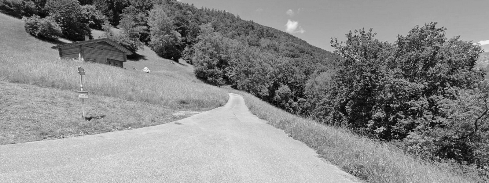 Blick von der Gemeindegrenze zu Mastrils nach Süden über die Bergwiese Frättis. Über die Wiese verläuft der Obere Löserweg.