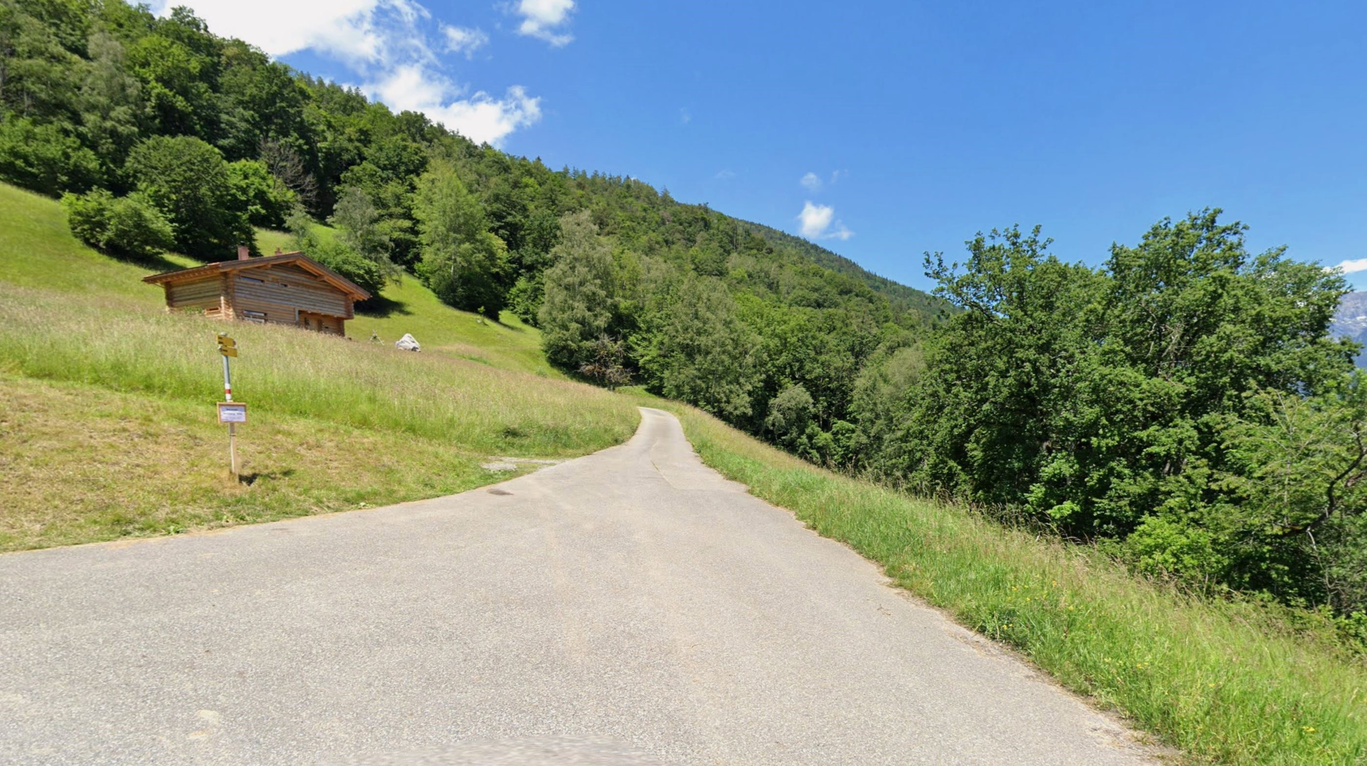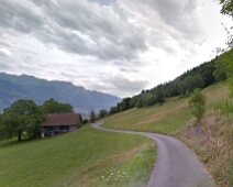 Blick vom Nordrand der Frättiser Bergwiese über die Flur mit dem Weg hinweg. Aufnahme von Aug. 2013 (Bild: Google Streetview).