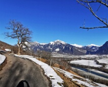 Aussichtsreicher Blick nach Nordosten entlang des Weges auf Frättiser Flur. In der Bildmitte der Vilan. Aufnahme von Dezember 2021.