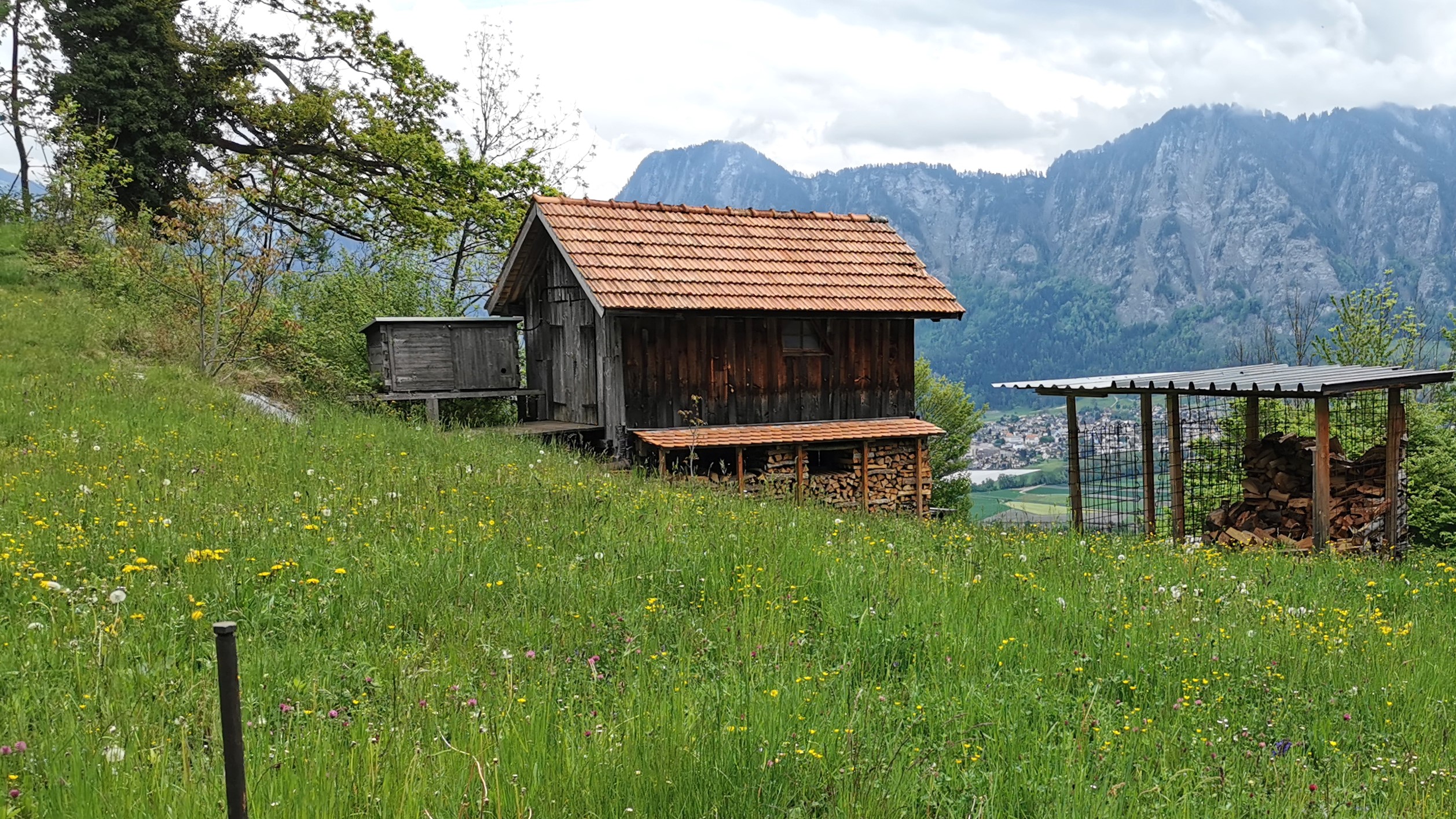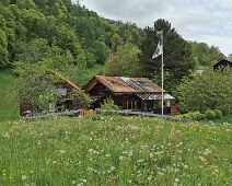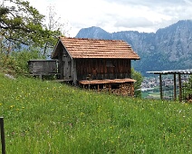 Kleinerer Schuppen (Haus 315-B auf 759 m Höhe) unmittelbar neben (etwas nördl.) dem Wohnhaus Patnal Nr. 6. Blick nach Nordosten zum Haupt (links über dem Dach)…