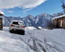 Blick vom oberen Ende des Zufahrtsweges 'Patnal' nach Osten über das Patnaler Büheli (hier ca. 755 m hoch) hinweg zu den winterlichen Bergen im Rheintal…