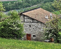 Gebäude Nr. 309-A auf ca. 732 m Höhe an der Zufahrt 'Patnal', oberhalb des Grabens vom Mateiliserbach, Blick von Nordwesten.